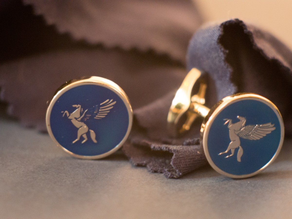 Silver plated, enamel Pegasus cufflinks designed exclusively for The Inner Temple.